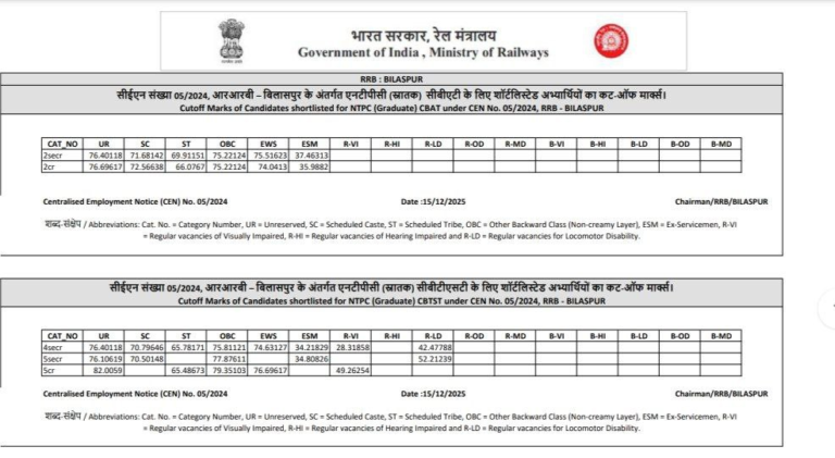 रिजल्ट PDF में कट ऑफ मार्क्स भी दिए जाते हैं, जो कैटेगरी-वाइज (UR, OBC, SC, ST, EWS) और जोन-वाइज होते हैं।