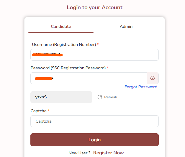 - लॉगिन करें – अपना रजिस्ट्रेशन नंबर और डेट ऑफ बर्थ या पासवर्ड डालें।