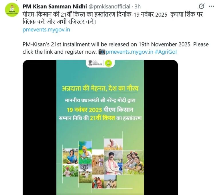 PM Kisan 21st Instalment 2025-भारत देश के प्रधानमंत्री श्री नरेंद्र मोदी जी के द्वारा पीएम किसान योजना को शुरू किया गया है इस योजना के अंतर्गत देश के किसान को आर्थिक सहायता के तौर पर 1 साल में पूरे 6000 रुपया दिया जाता है तो सभी किसान लोगों को यह मालूम होना चाहिए कि इस योजना के तहत 20वीं किस्त कि राशि मिल चुका है।